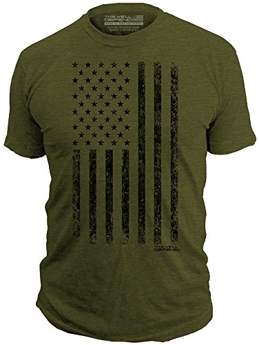 This We'll Defend - Distressed American Flag - Made of USA - Mens 52/48 Premium T-Shirt, Olive Heather (2X-Large)![]()  - Vendor